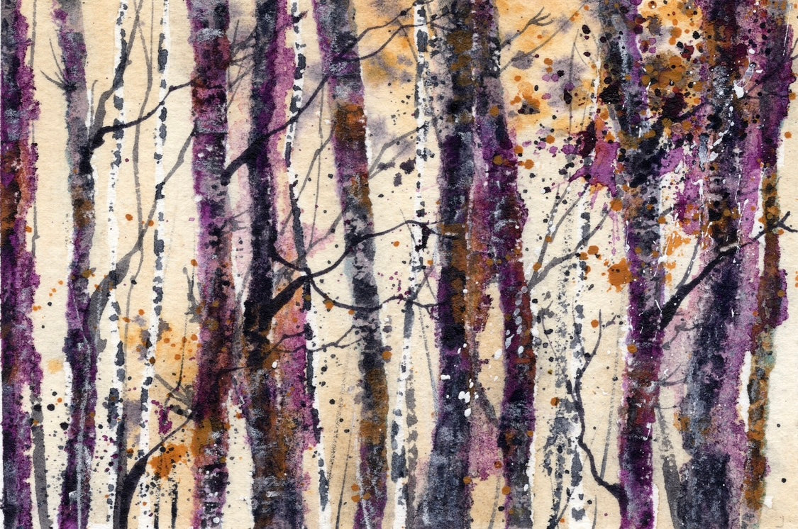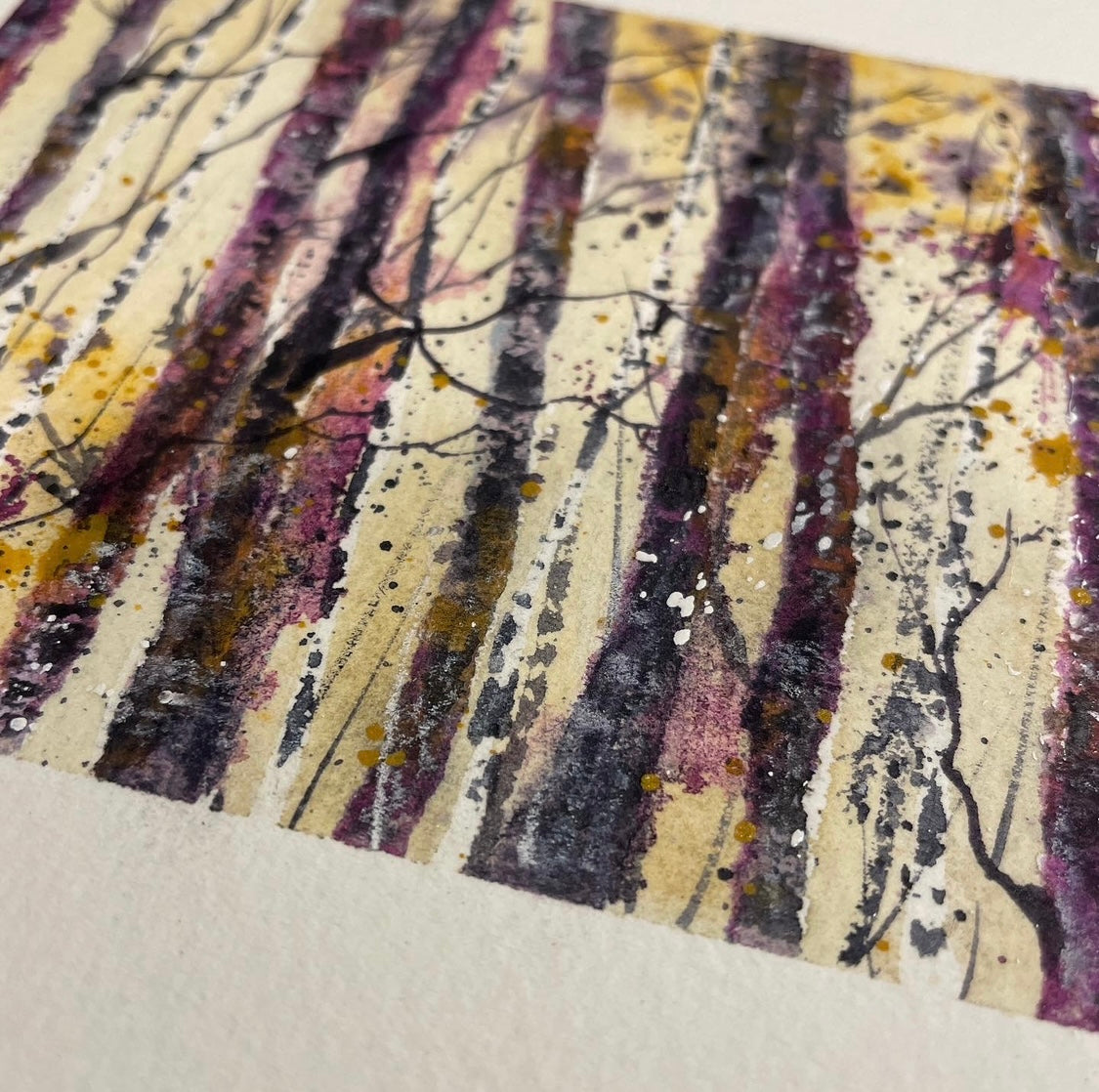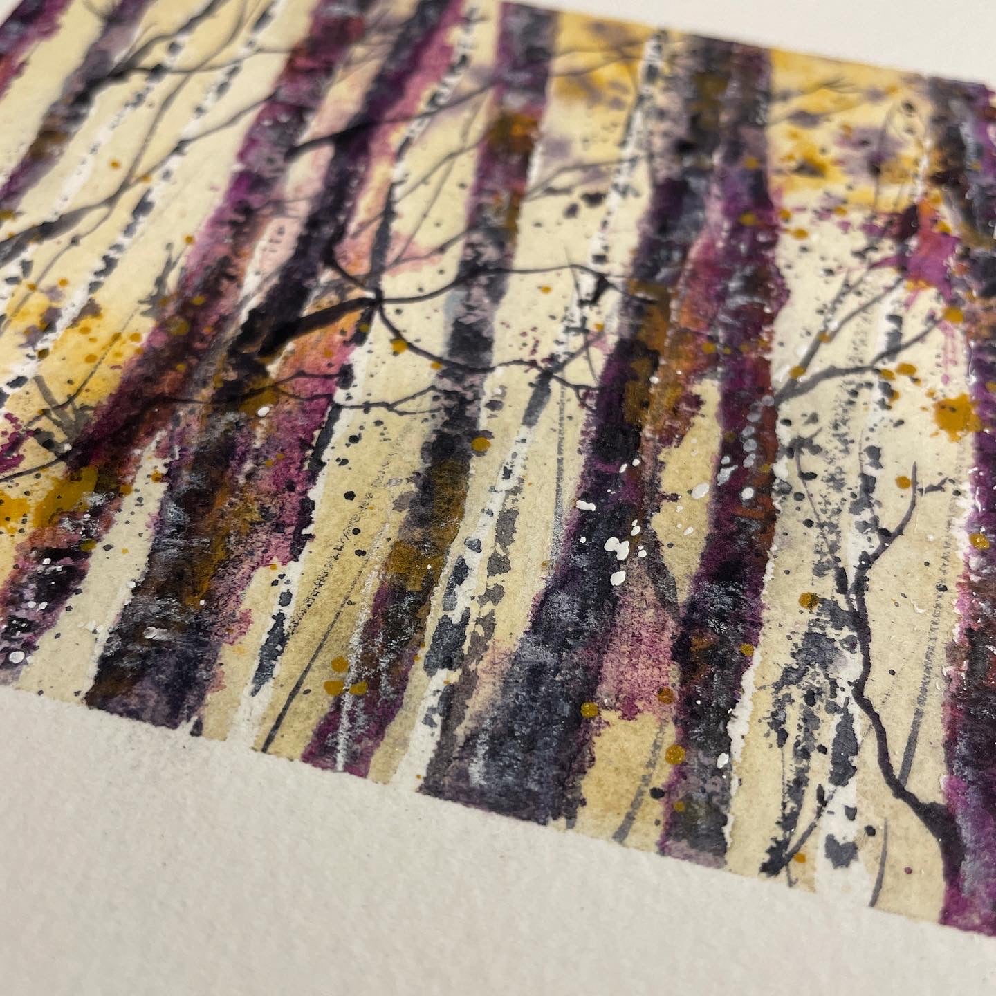Winter trees - Mounted Original Birch trees Art 9 x 7