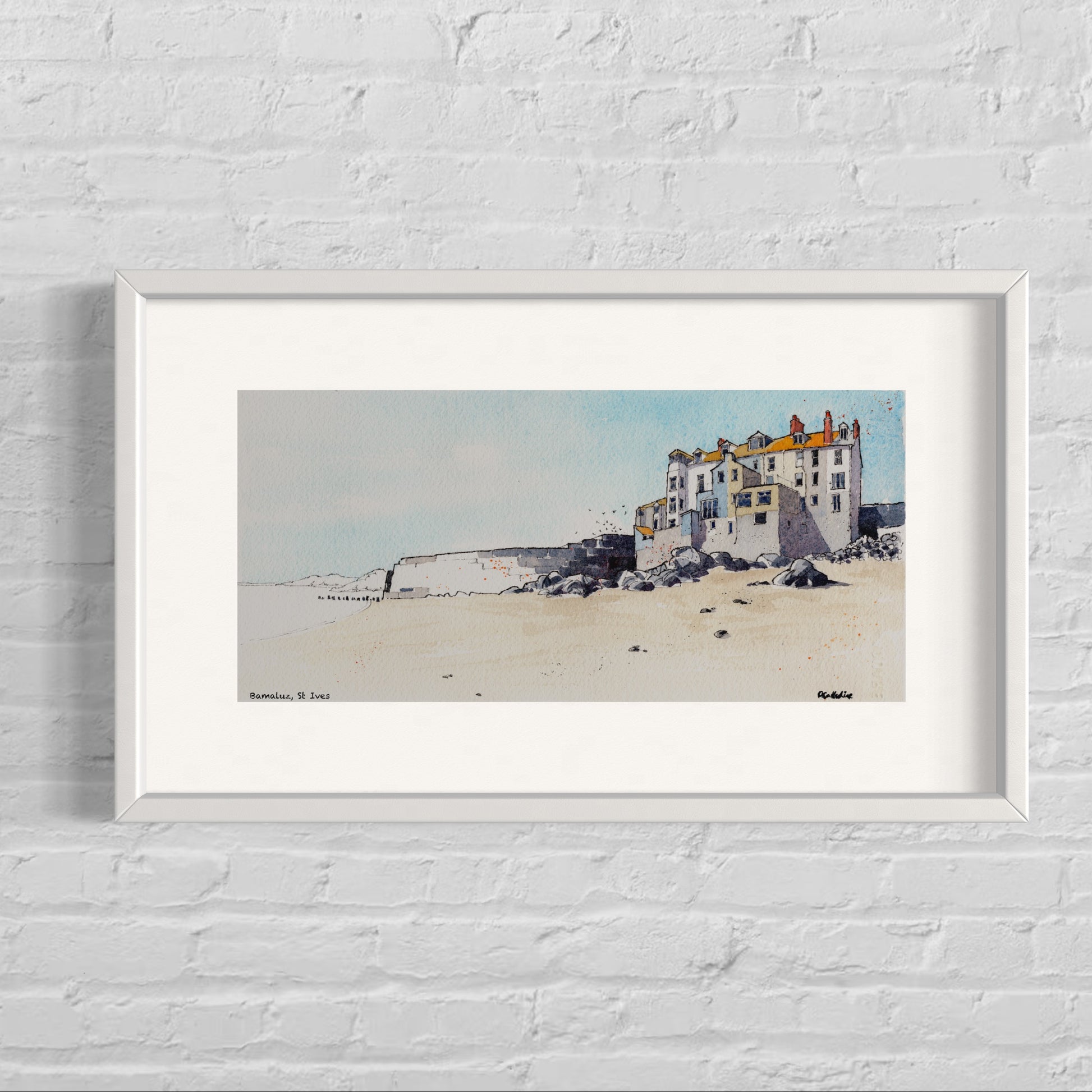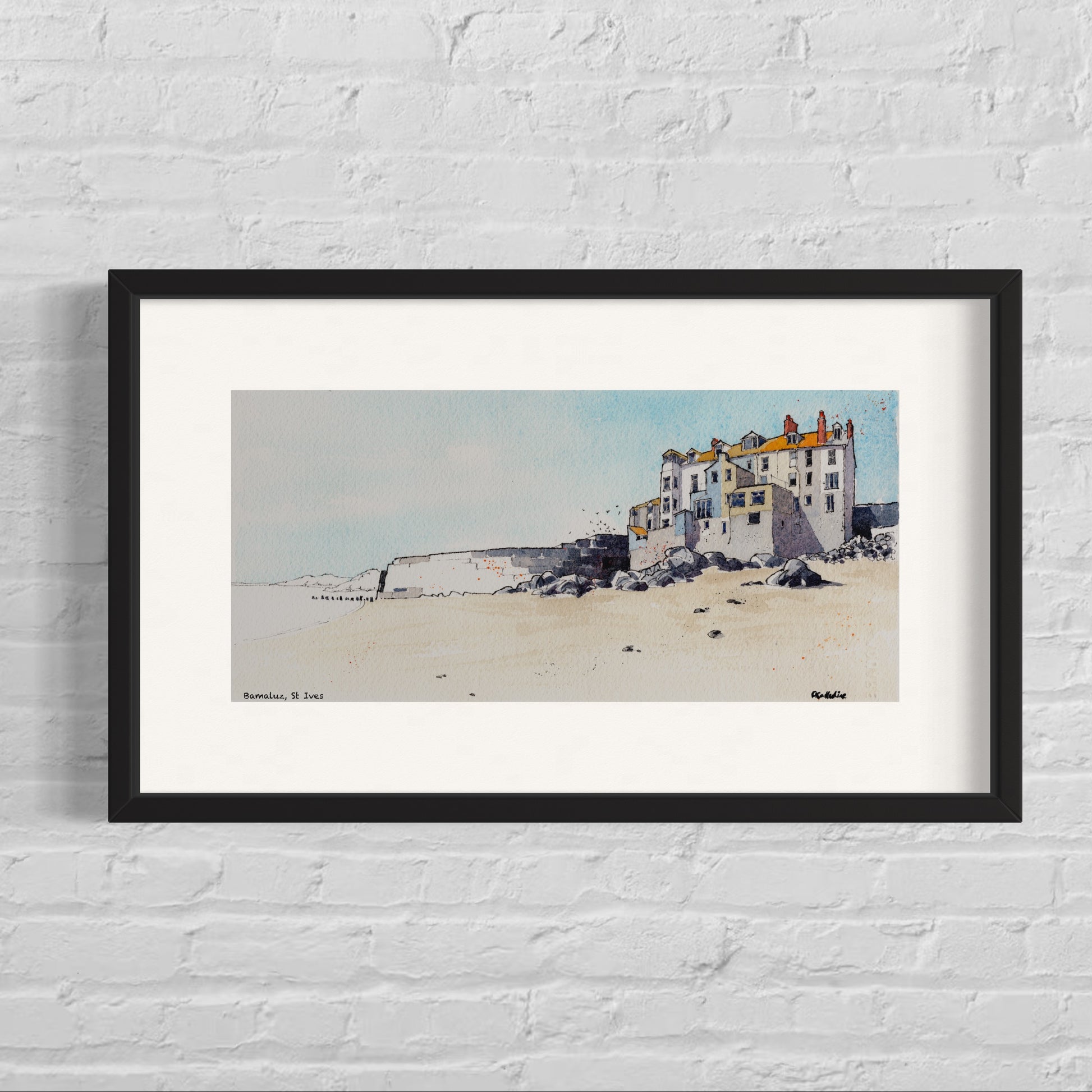 St Ives Bamaluz Beach - Mounted Fine Art Print 16x9’’