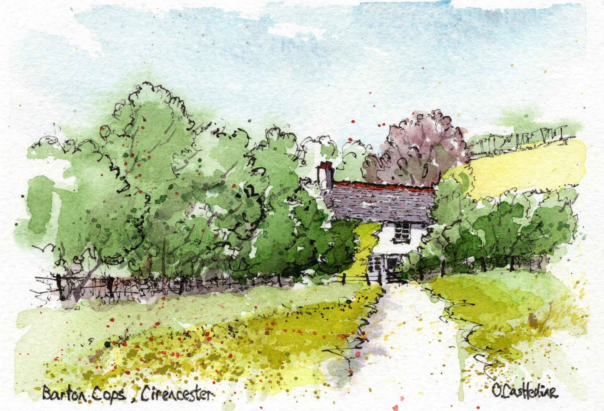This little painting features the buttercup meadows known as Barton Cops in Cirencester, the Cotswolds.