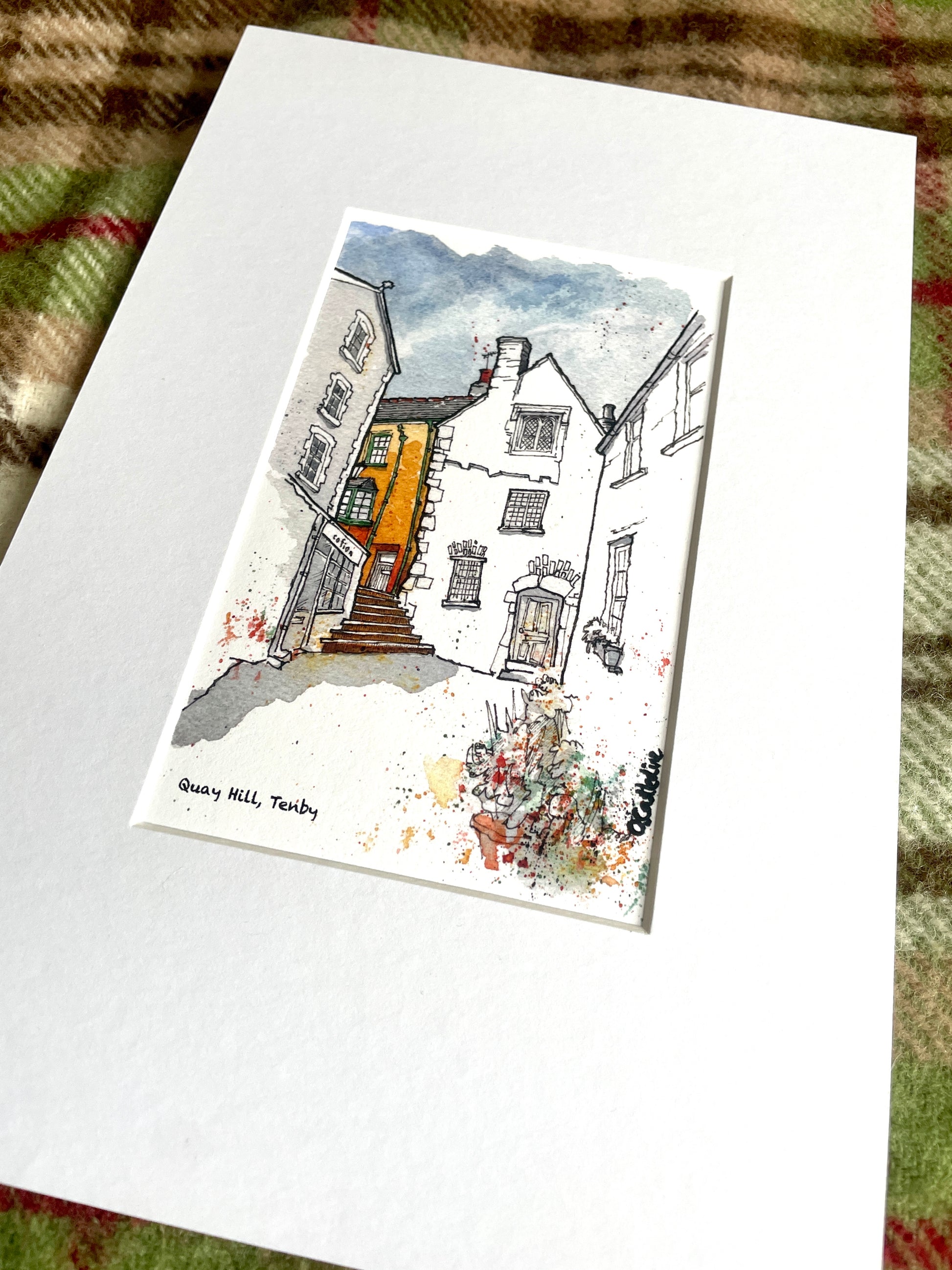 Quay Hill, Tenby Wales - Mounted Fine Art Print